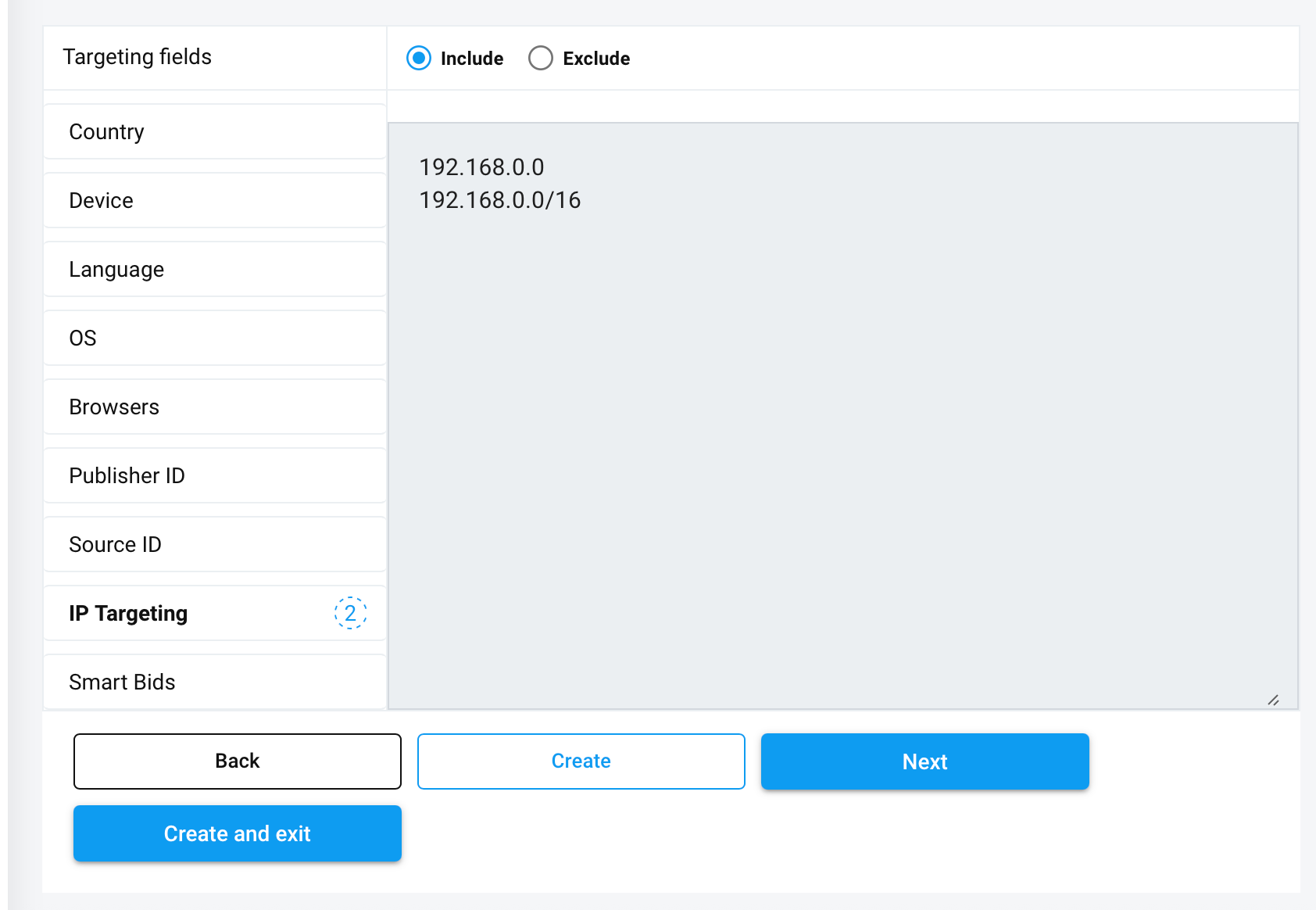 - Once the settings are saved, IP targeting will be applied to the campaign automatically.